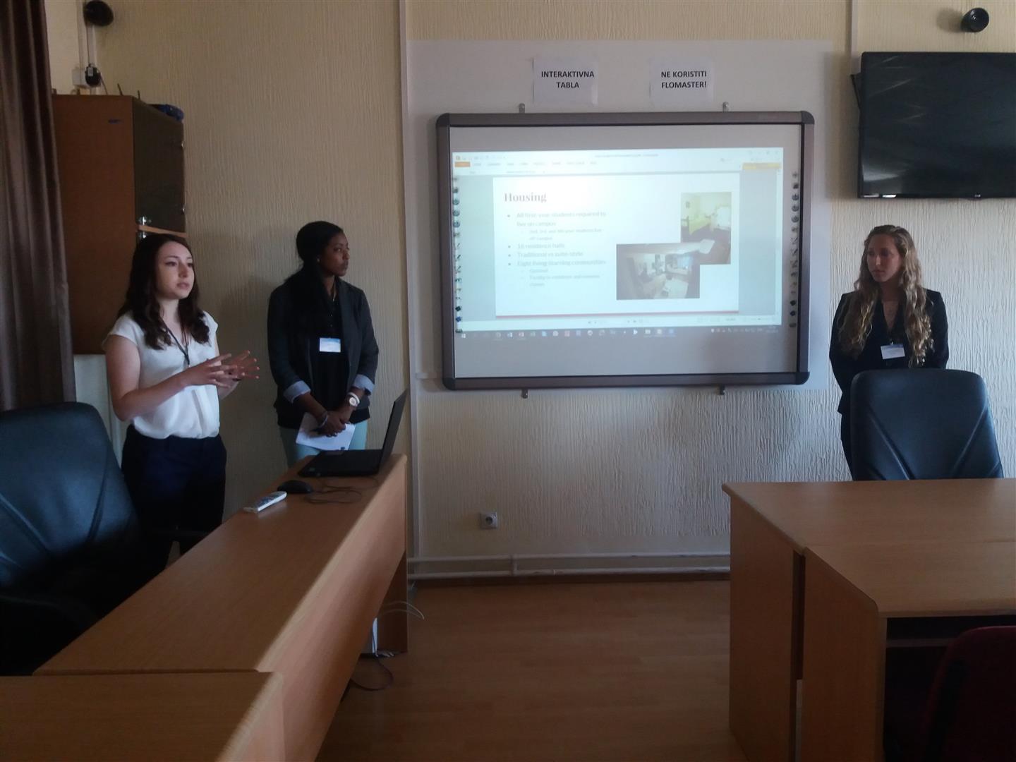 Једна од активности била је и презентација социјалних покрета и анализа председничких избора у обе земље како би се кроз директна искуства установиле сличности и разлике два система. Презентација је изазвала велико интересовање, а присутне је поздравила управница Департмана за англистику проф. др Милица Живковић која је истакла да јој је драго што су ове студијске посете већ постале традиција, јер је добробит вишеструка.