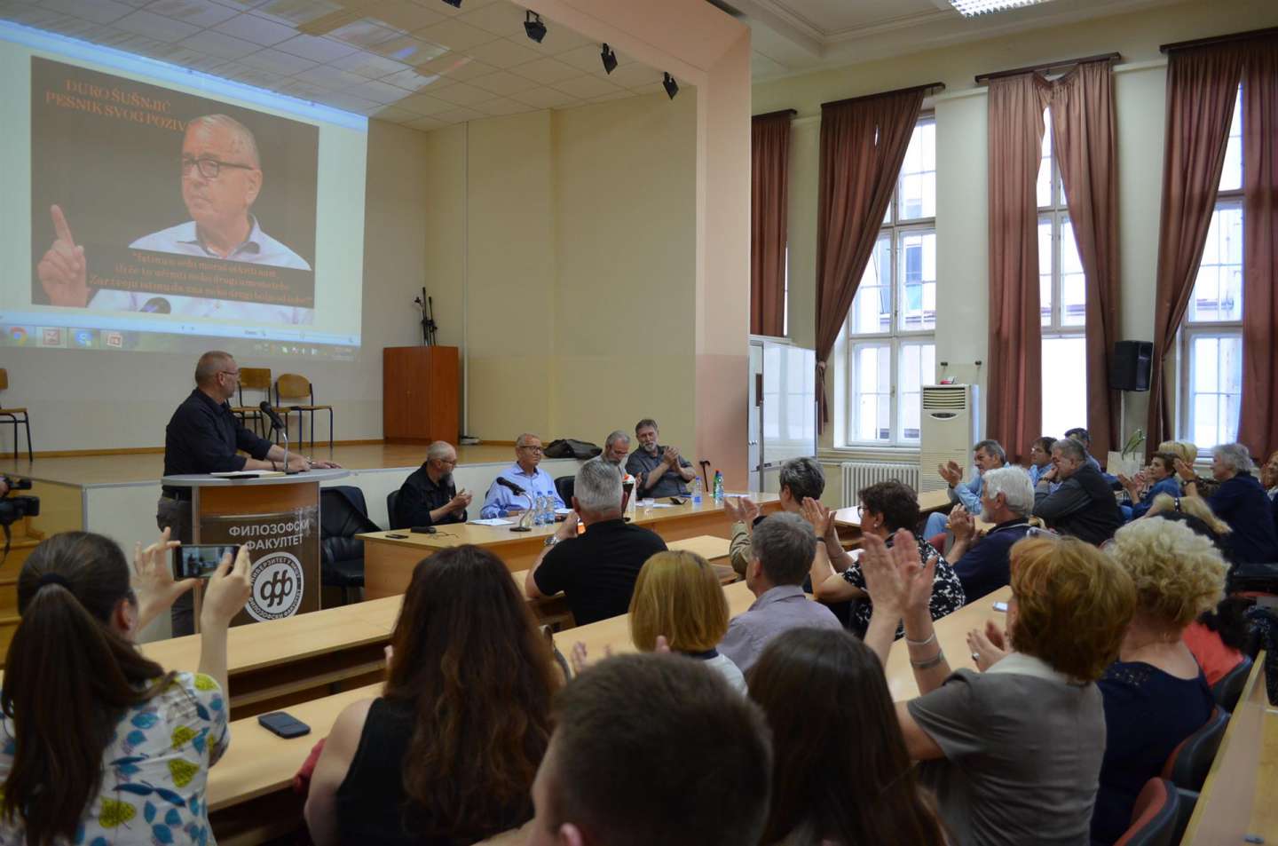 Један од најзначајнијих интелектуалаца и, како би његови бивши студенти рекли, највећи живи социолог проф. др Ђуро Шушњић био је гост трибине "Ђуро Шушњић - песник свог позива" која је организована на Филозофском факултету.