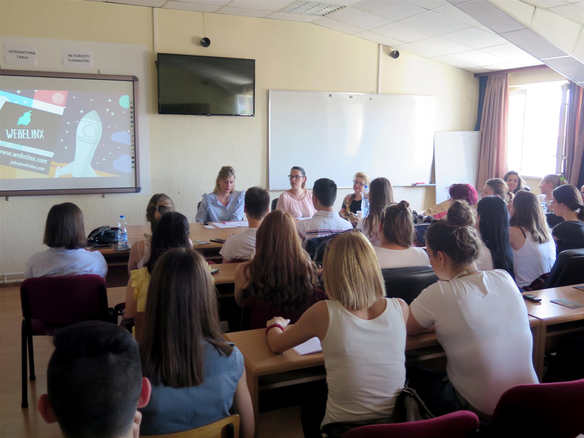 У препуној свечаној сали, присутнима су се испред компаније Webelinx обратиле Катарина Николић, менаџер људских ресурса, и Радмила Филиповић, преводилац и вођа тима, а обе су завршиле управо Филозофски факултет, односно програме Департмана за комуникологију и новинарство, и Департмана за англистику. Због природе посла, Катарина Николић је у кратким цртама представила компанију, а говорила је и о процесу пријаве и селекције кандидата, као и о томе шта је све потребно како би неко постао део тима ове компаније. Са друге стране, Радмила Филоповић је говорила о послу преводиоца и аутора креативног садржаја као и вође тима, фокусирајући се на свакодневне изазове које ови послови доносе.