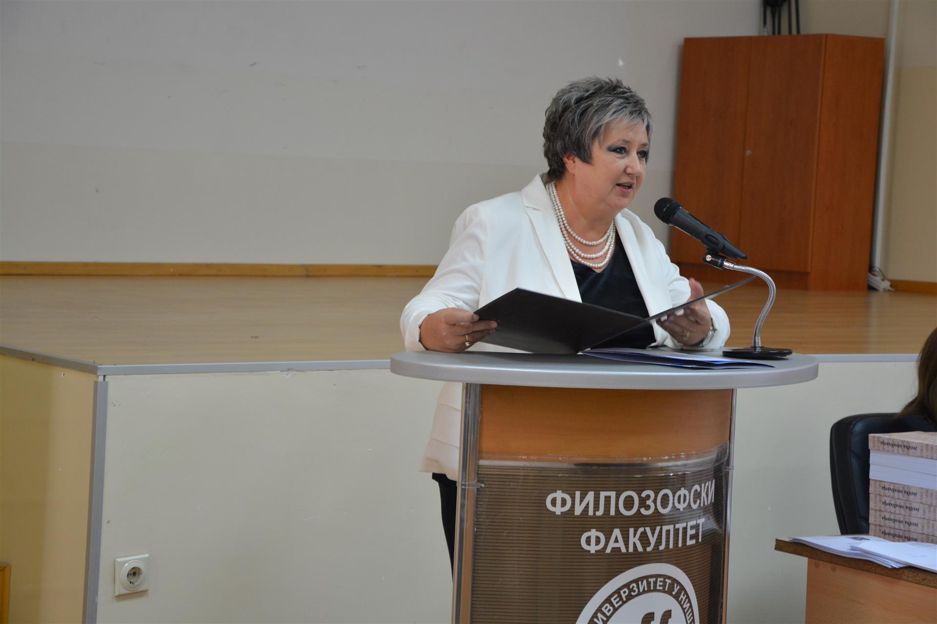 Студентима је добродошлицу пожелела деканица проф. др Наталија Јовановић рекавши том приликом да су одабрали прави факултет који има дугогодишњу традицију и нуди врхунски квалитет образовања и да је привилиегија бити студент Филозофског факултета у Нишу. Она је истакла да Факултет стално прати трендове у науци и на тржишту рада, да стално уводи нове и осавремењује старе програме. Деканица Јовановић подсетила је бруцоше да осим од својих наставника и сарадника, помоћ у сваком тренутку током студија могу добити и од старијих студената, али и у Канцелаији за подршку студентима - јединој канцеларији такве врсте на факултетима Универзитета у Нишу.