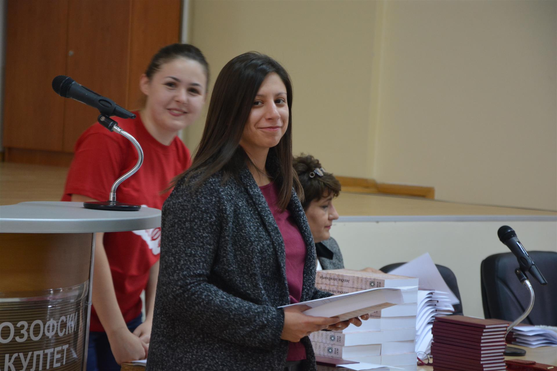 Овом приликом уручена је и награда студенткињи педагогије Миљани Нисић која је осмислила слоган за предстојећу промотивну кампању факултета - "Филозофски упиши, успех намириши".