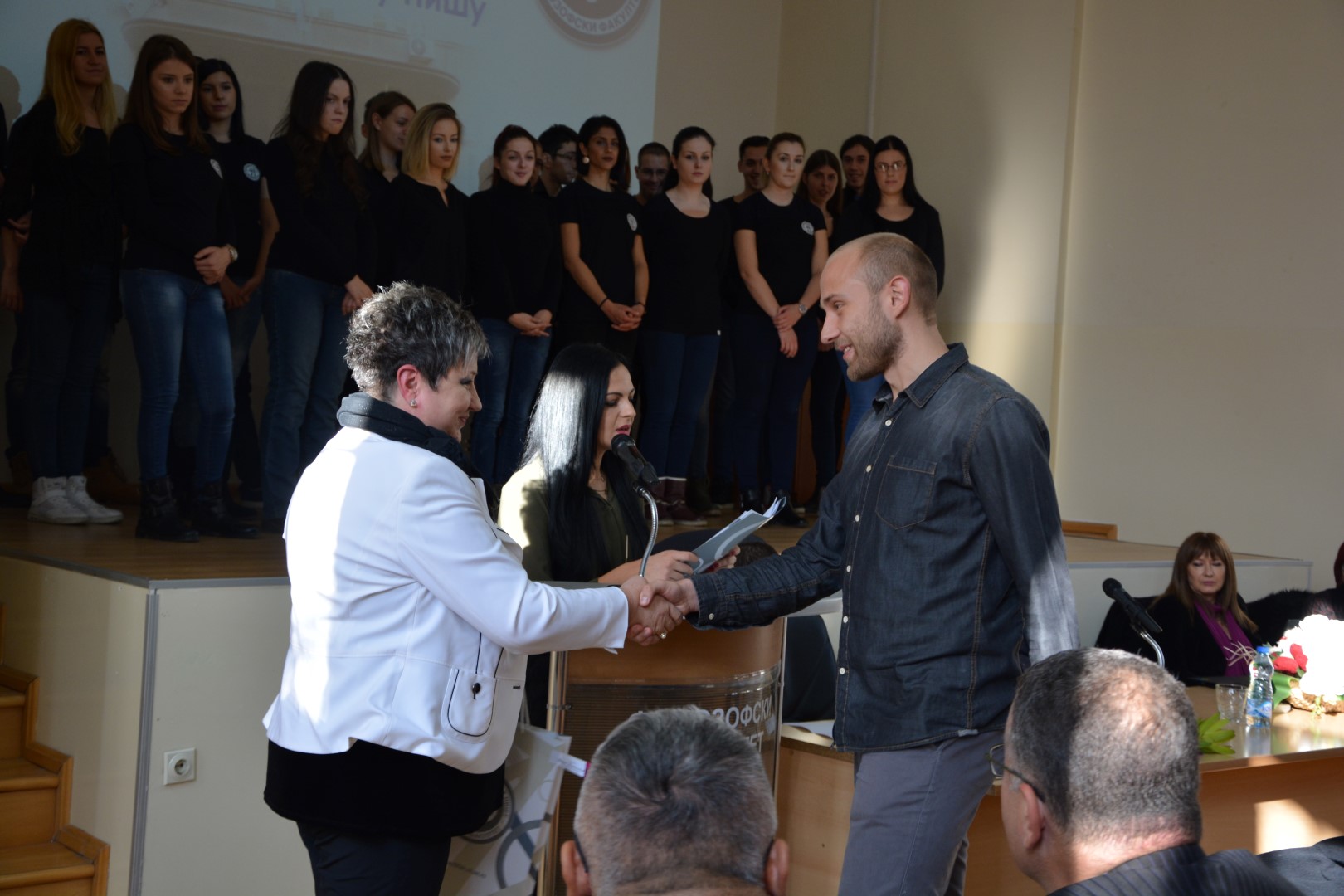 Традиционално су награђени најбољи студенти и запослени који обележавају јубиларну годину рада на Факултету. За уметнички програм побринула са драмска секција Факултета, као и хор Факултета уметности.