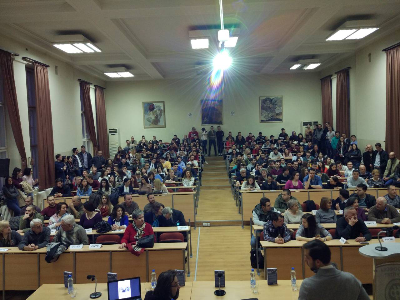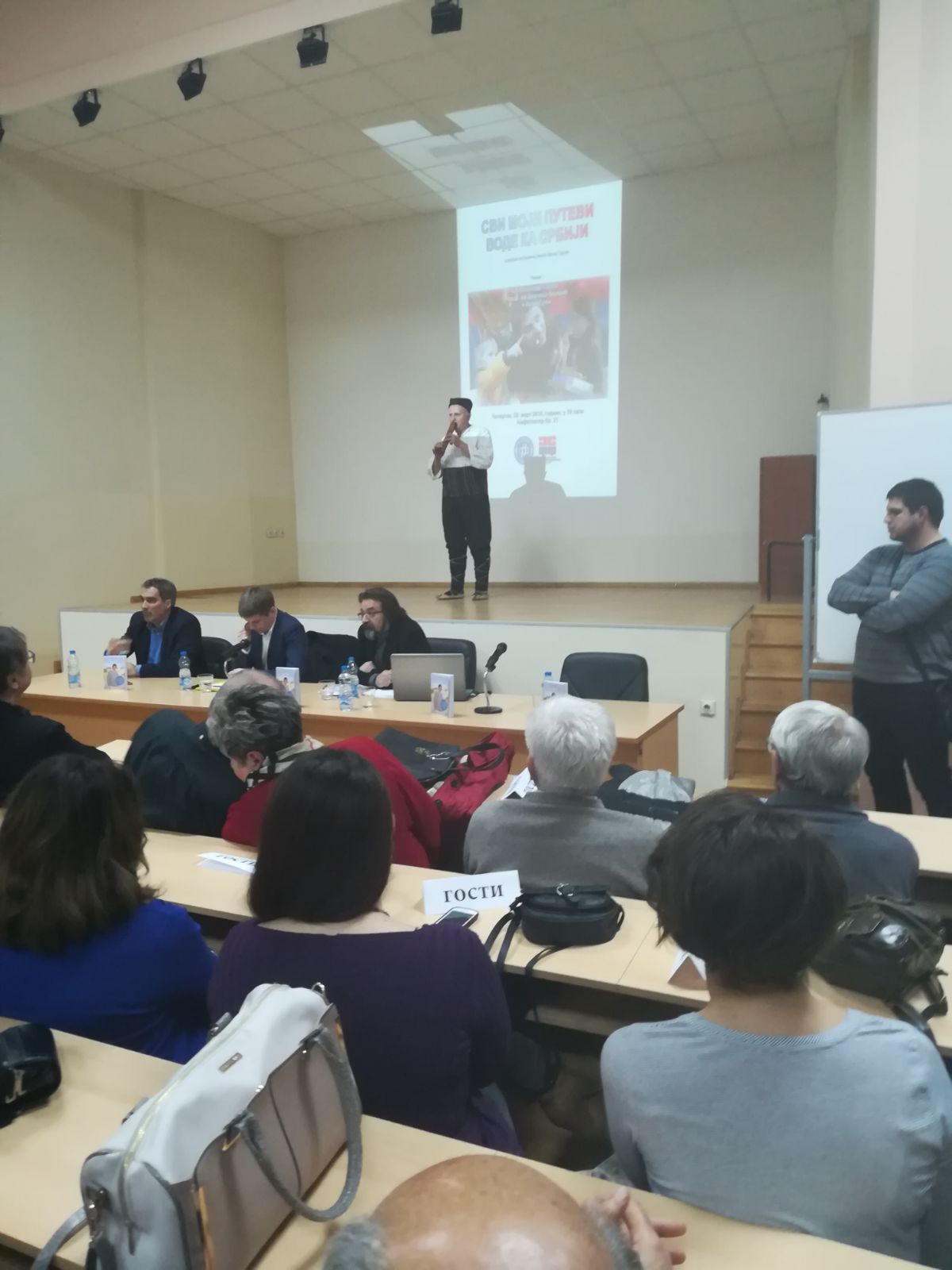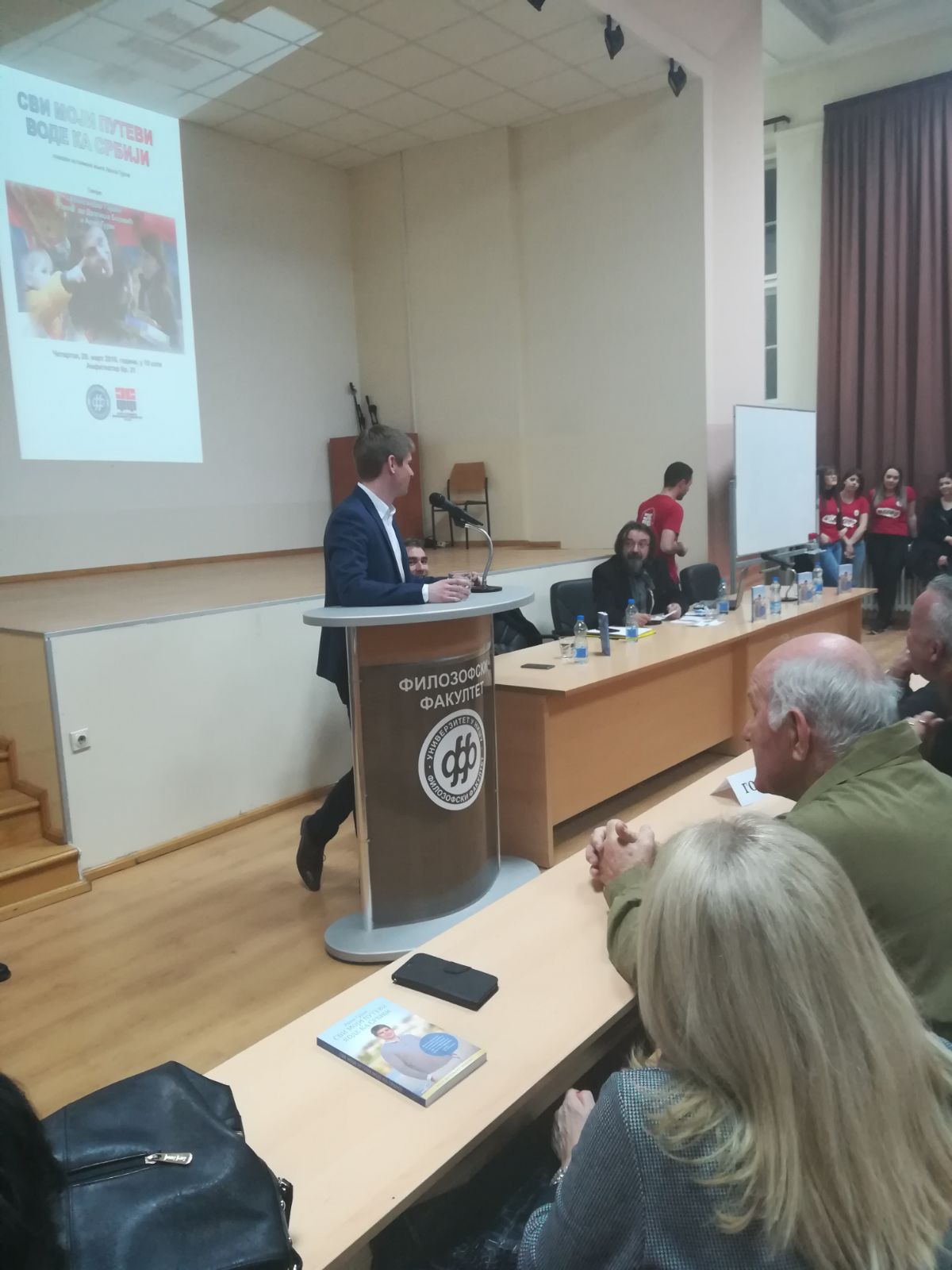 У четвртак, 29. марта, Филозофски факултет је имао част да угости великог хуманитарца и пријатеља српског народа, Арноа Гујона. Том приликом је гост представио своју нову књигу „Сви моји путеви воде ка Србији“ студентима Филозофског факултета и Нишлијама, које су показале велико интересовање за овај догађај.